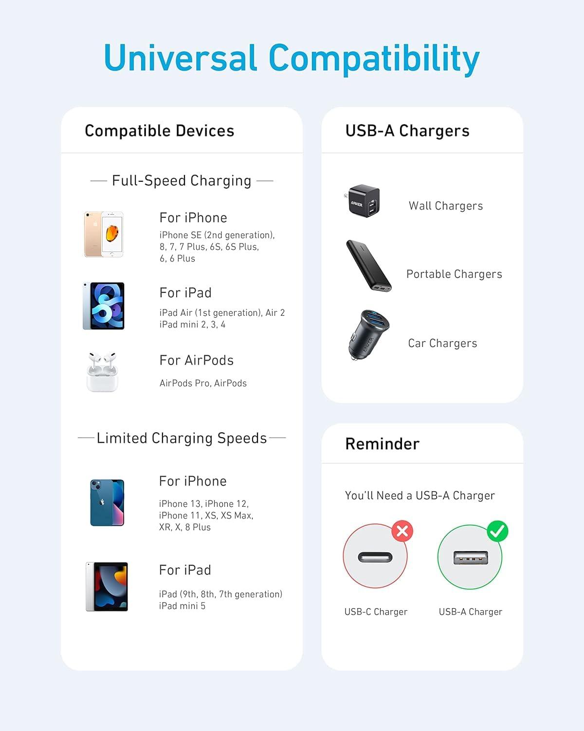 What You Get: Premium Nylon Lightning iPhone Charger Cable (6 ft/1.8 m), welcome guide, a 18-month warranty, and our friendly customer service.
