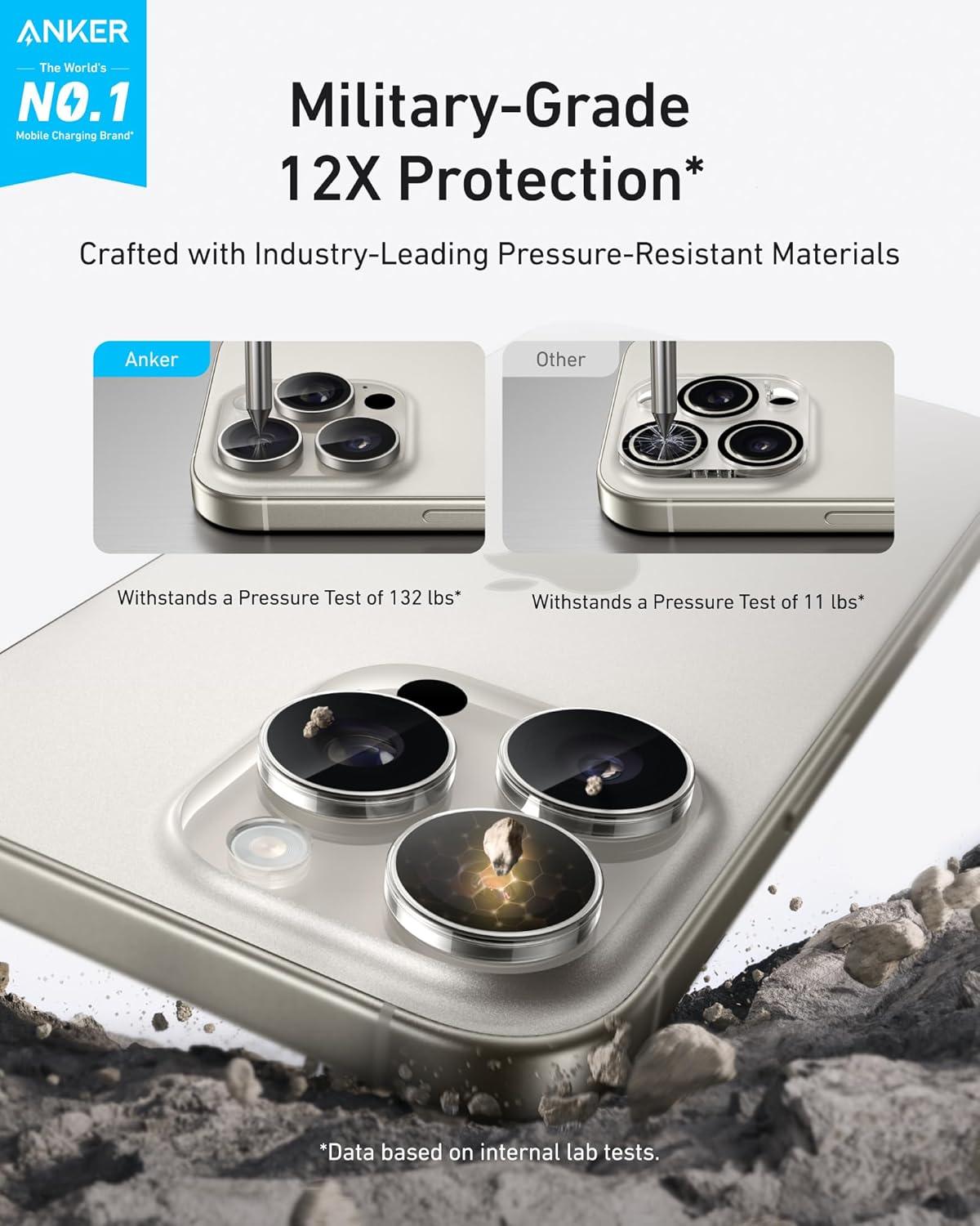 Anker Camera Lens Protector for iPhone 16 Pro/16 Pro Max, 2-Pack HD and Ultra-Durable ShieldX Glass, Easy Installation, Exclusively for iPhone 16 Pro/16 Pro Max (Light Brown)(Titanium)