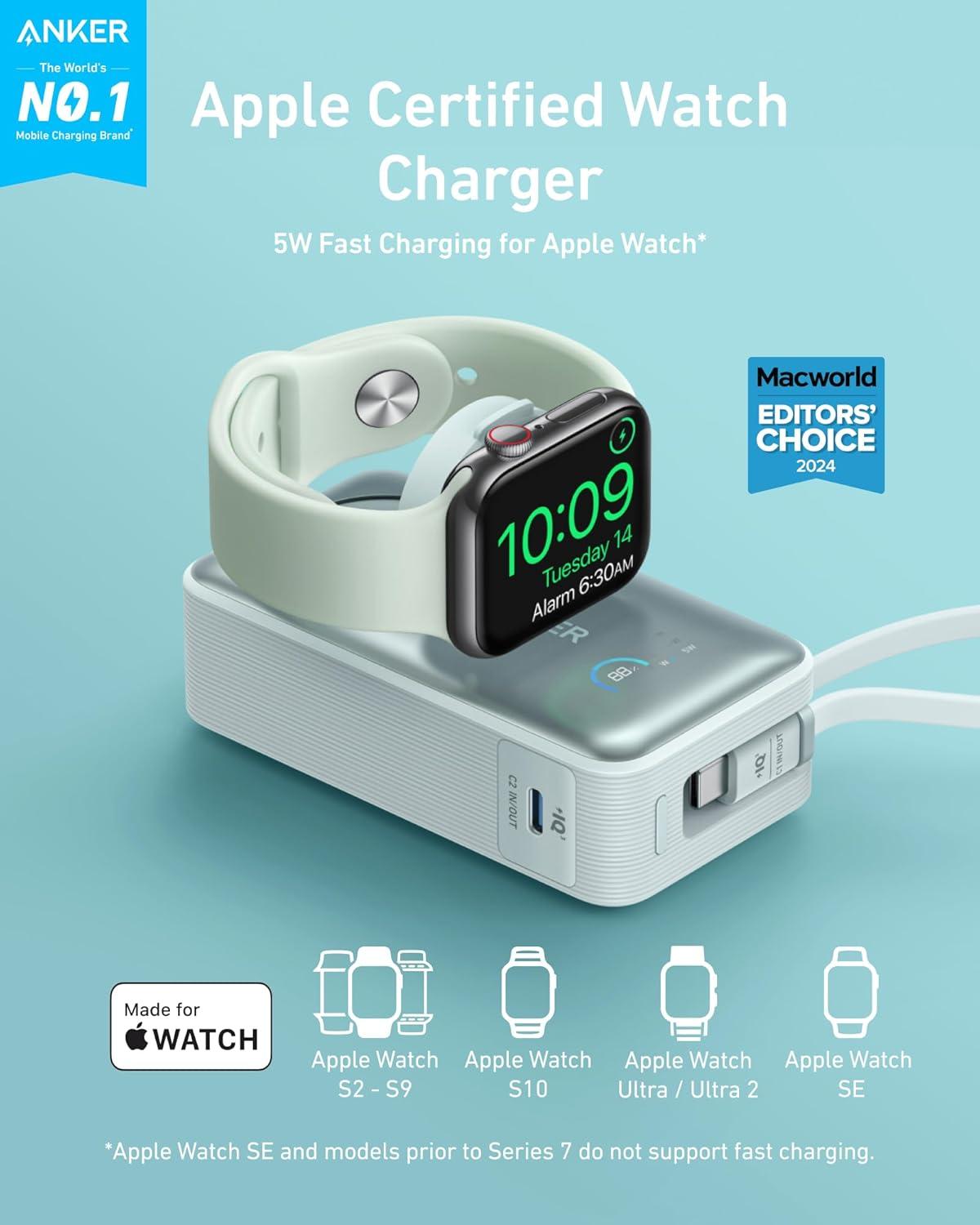 Officially Certified for Apple Watch: Maximize your charging efficiency with the Apple-certified power bank, capable of charging an Apple Watch Series 9 to 47% in just 30 minutes.