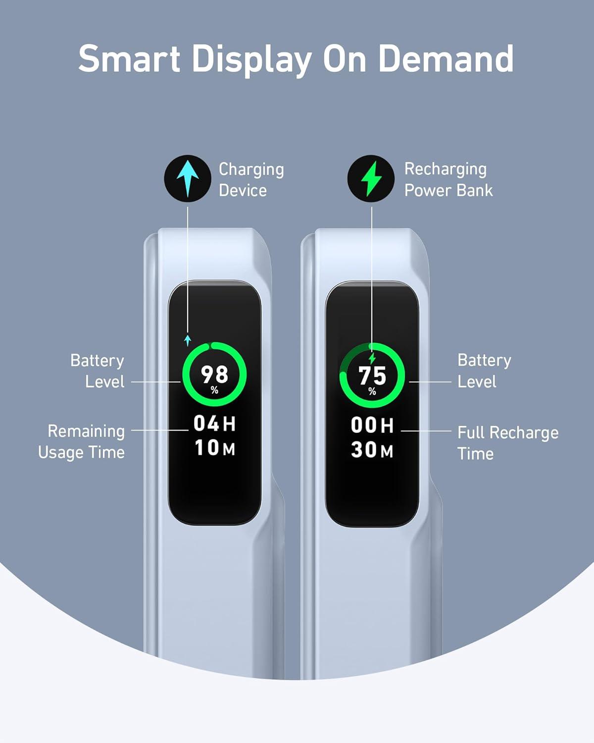 Informative Smart Display: Keep tabs on your device's charging journey. From battery percentages to full recharge times, the intuitive smart screen ensures you're always updated.