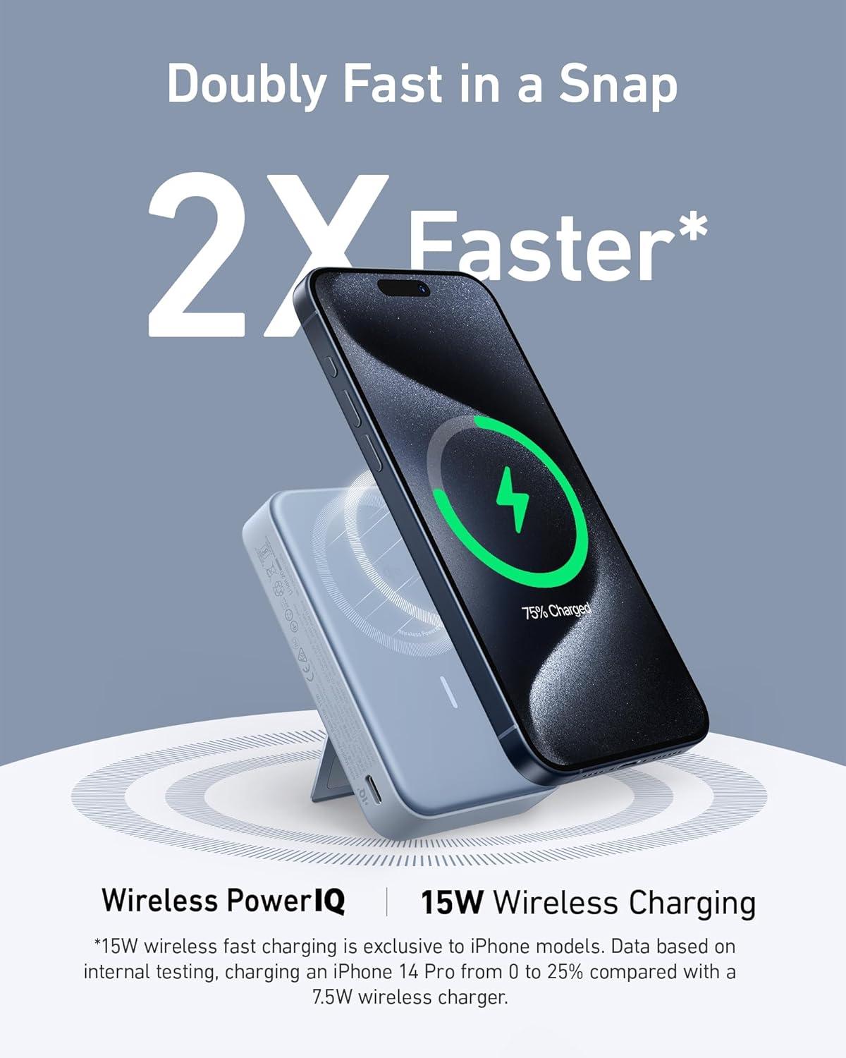 Anker MagGo Power Bank, Qi2 Certified 15W Ultra Fast MagSafe Compatible Mobile Charger, 10,000mAh Battery with Smart Display & Foldable Stand, for iPhone 17/16/15/14, Includes USB-C Cable(Blue)