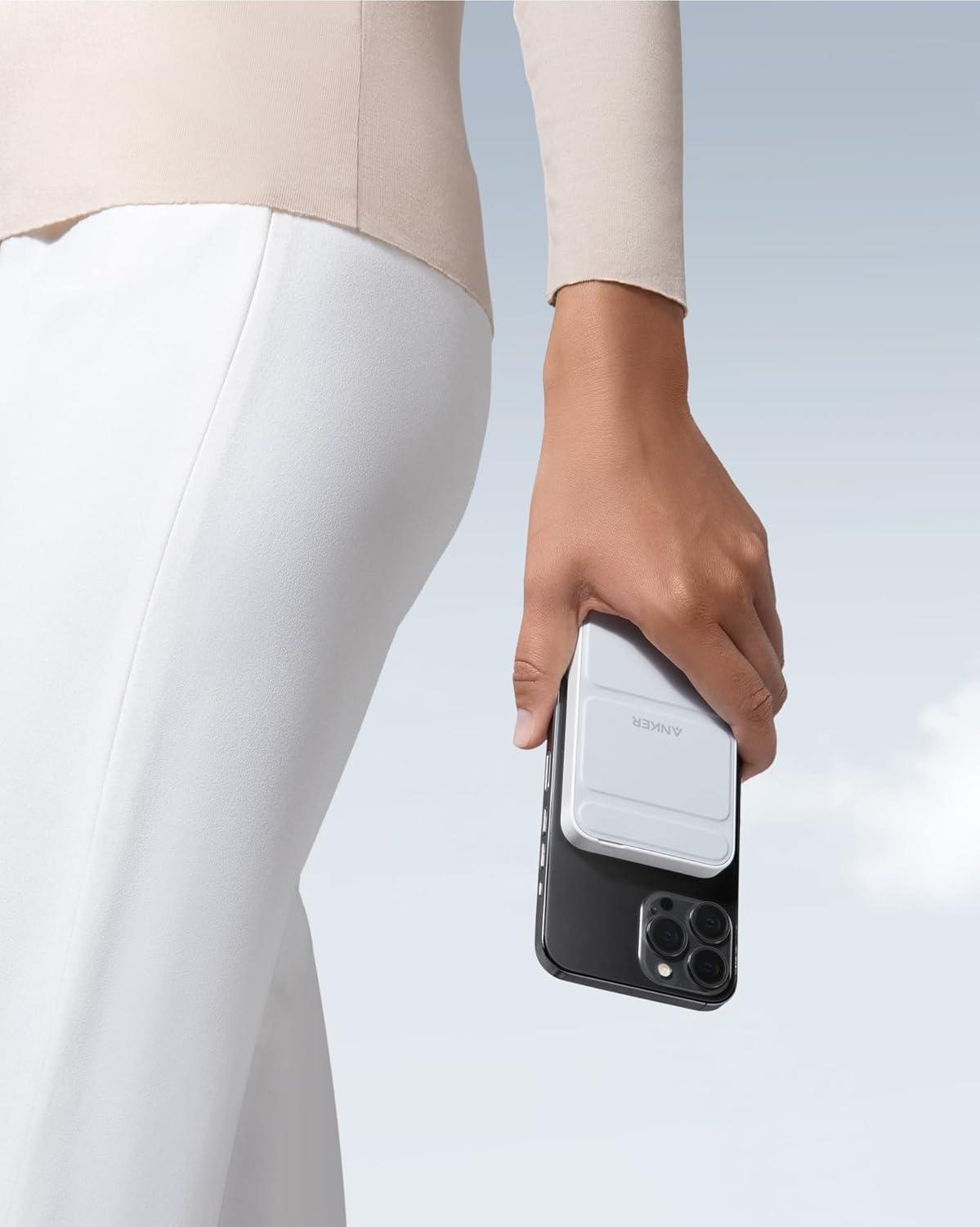 ANKER Magnetic Battery (MagGo), 5K Foldable Magnetic Wireless Portable Charger and USB-C for iPhone 15/15 Plus/15 Pro/15 Pro Max, iPhone 14/13 Series (Buds Green)(Dolomite White)