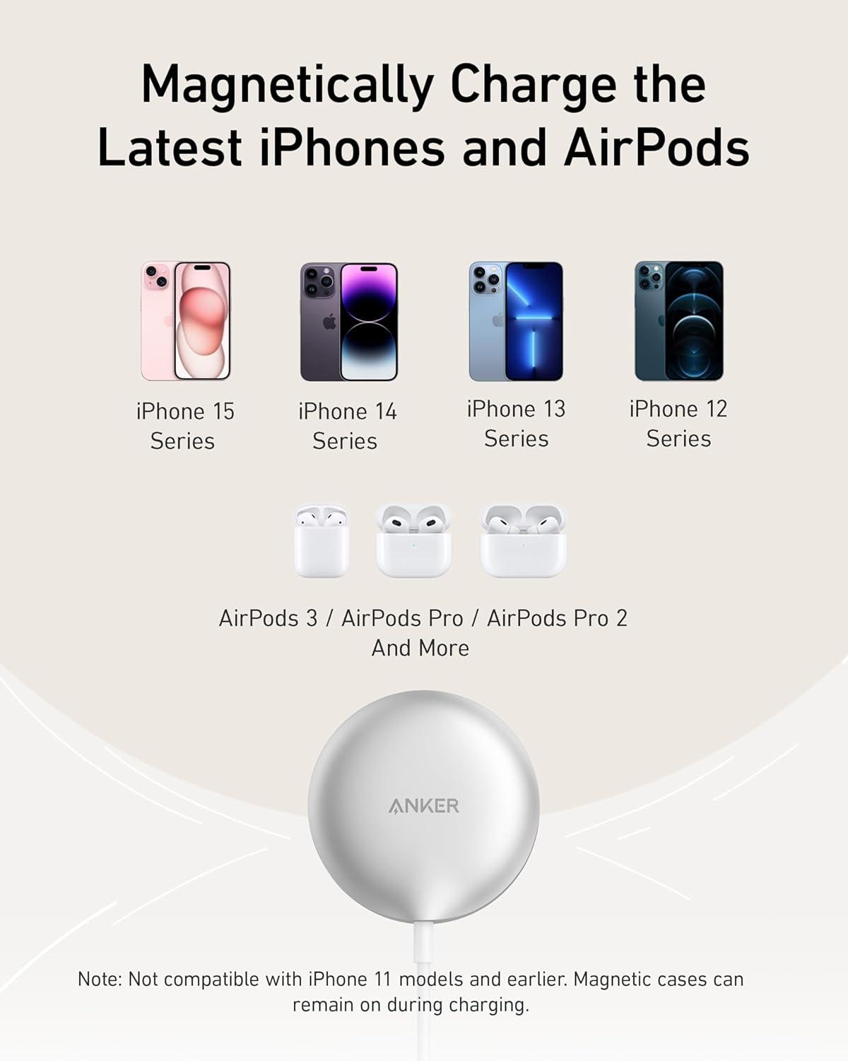 Quick Snap to Charge: Featuring strong built-in magnets, effortlessly snap to charge the latest iPhones with magnetic cases for a hassle-free and precise charging experience.