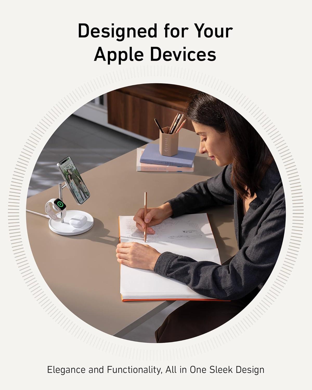 Aesthetic Multi-Device Charging: Embrace aesthetically pleasing design and precise spacing with an innovative “tree-like” structure, allowing seamless simultaneous charging of your iPhone, Apple Watch, and AirPods.