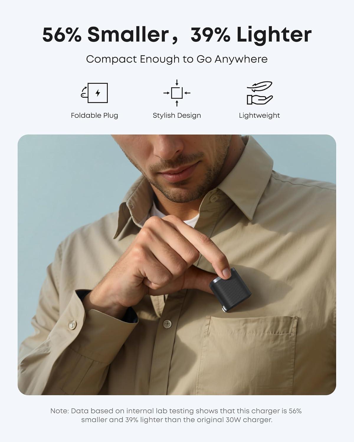 Ultra-Portable and Sleek: This pocket-sized charger features a foldable plug for easy storage and is exceptionally lightweight. It combines convenience with style, making it the perfect companion for on-the-go charging.