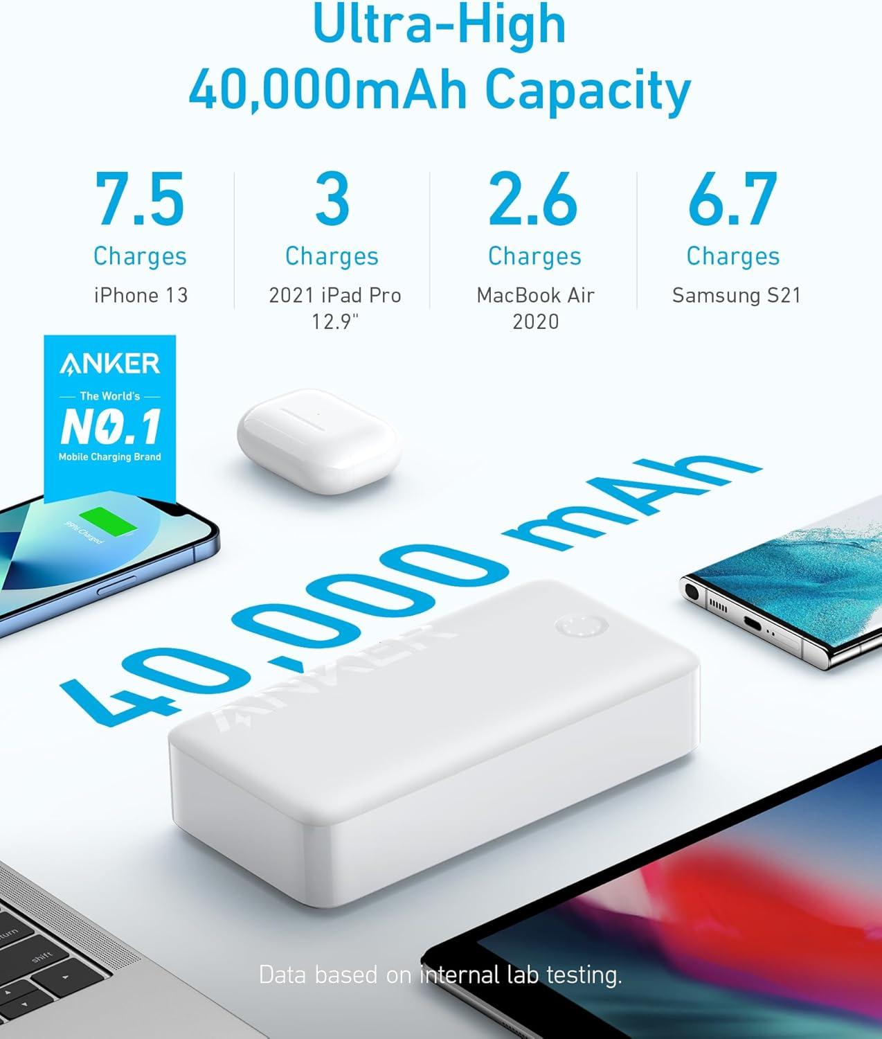 High Capacity Hero: The super huge 40,000mAh cell capacity provides 8.8 charges for iPhone 13, 6.8 charges for Samsung S22 Ultra, and 2.3 charges for MacBook Air 2020.