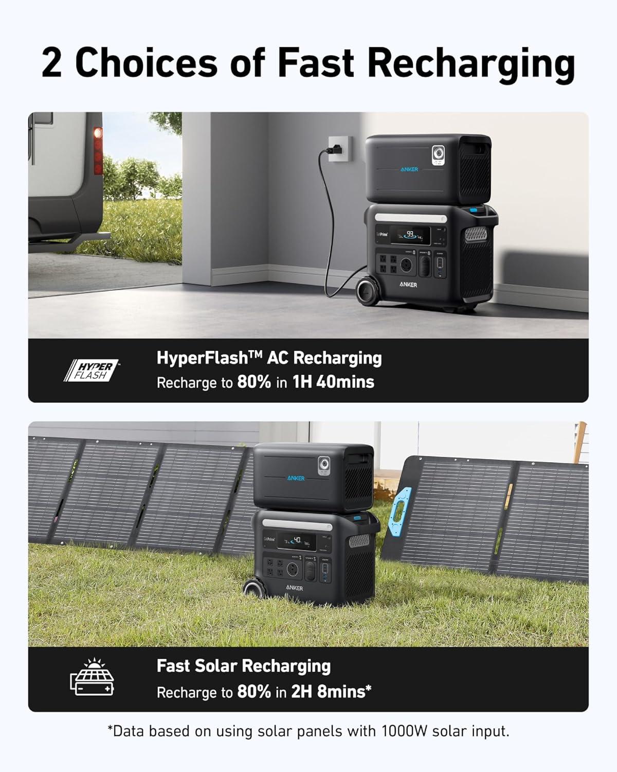 Anker SOLIX F2600 Portable Power Station, 2400W (Peak 3600W) Solar Generator, GaNPrime Battery Generators for Home Use, 2560Wh LiFePO4 Power Station for Outdoor Camping, and RVs (Solar Panel Optional)(Anker SOLIX F2600+BP2600)