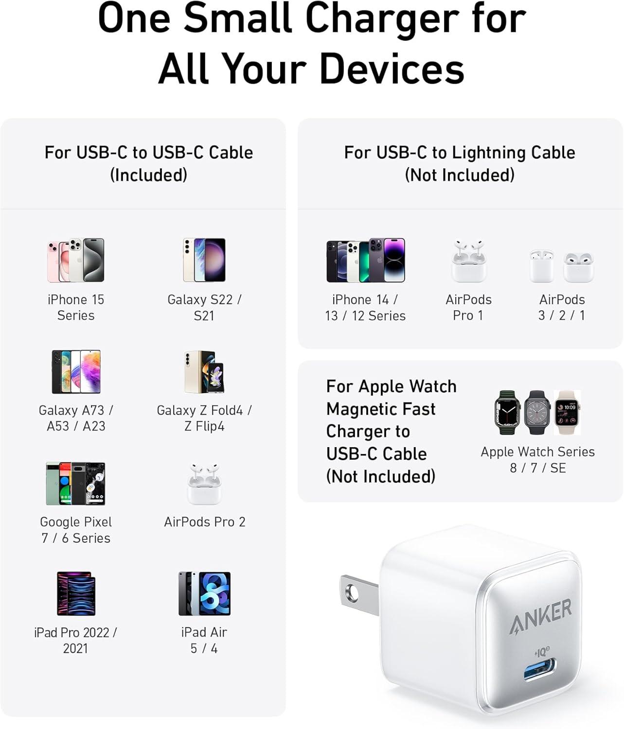 What You Get: Anker 511 Charger ( Anker Nano Pro ), welcome guide, our worry-free 18-month warranty, and friendly customer service (cable not included).