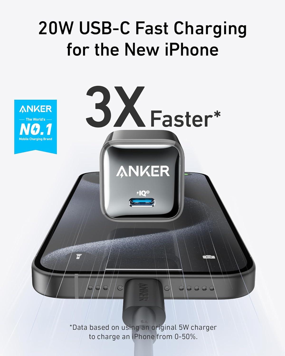 imageAnker USB C Charger Block 20W PIQ 30 Compact Fast Charging for iPhone 171615 and More Series Galaxy Pixel 43 iPad 2 Pack ampamp 2 Cableblack