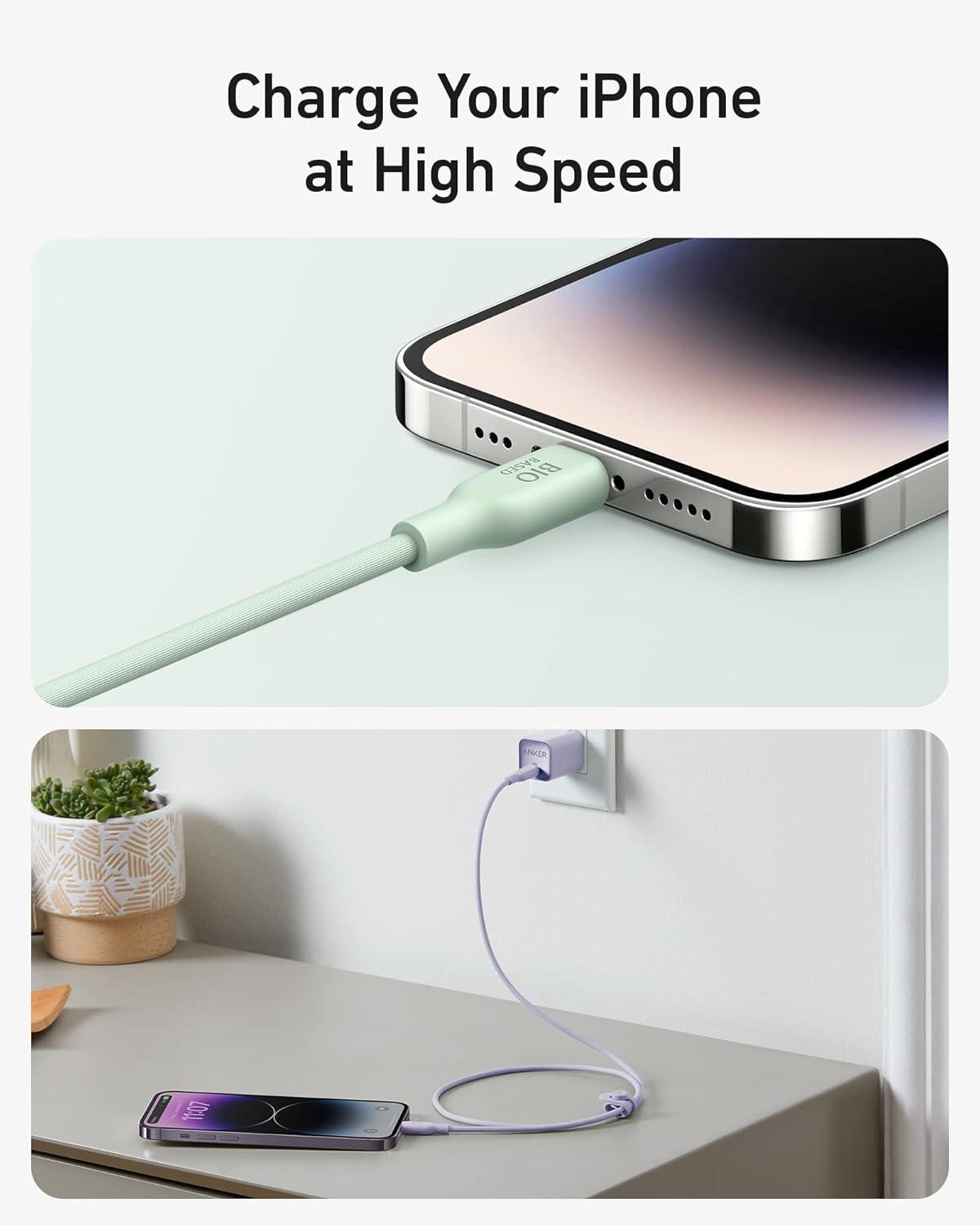 Get your hands on our exclusive Anker USB C to Lightning Cable [6FT],MFi Certified, Bio-Based Charging Cord, for iPhone 14 Series,and More(USB 2.0,Purple)(Green) collection, now at a discounted price.