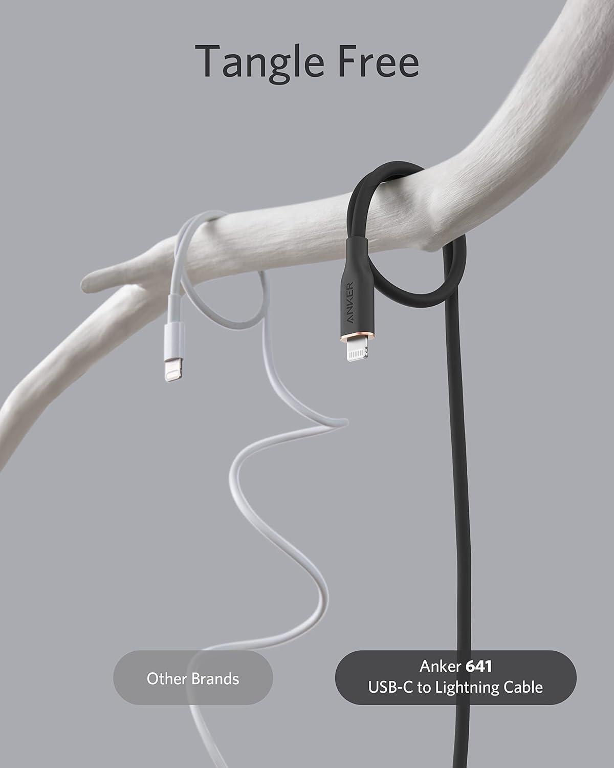 What You Get: Anker 641 USB-C to Lightning Cable (Flow, 6ft Silicone) / PowerLine III Flow USB-C with Lightning Connector, silicone cable tie, welcome guide, our worry-free 18-month warranty, and friendly customer service.