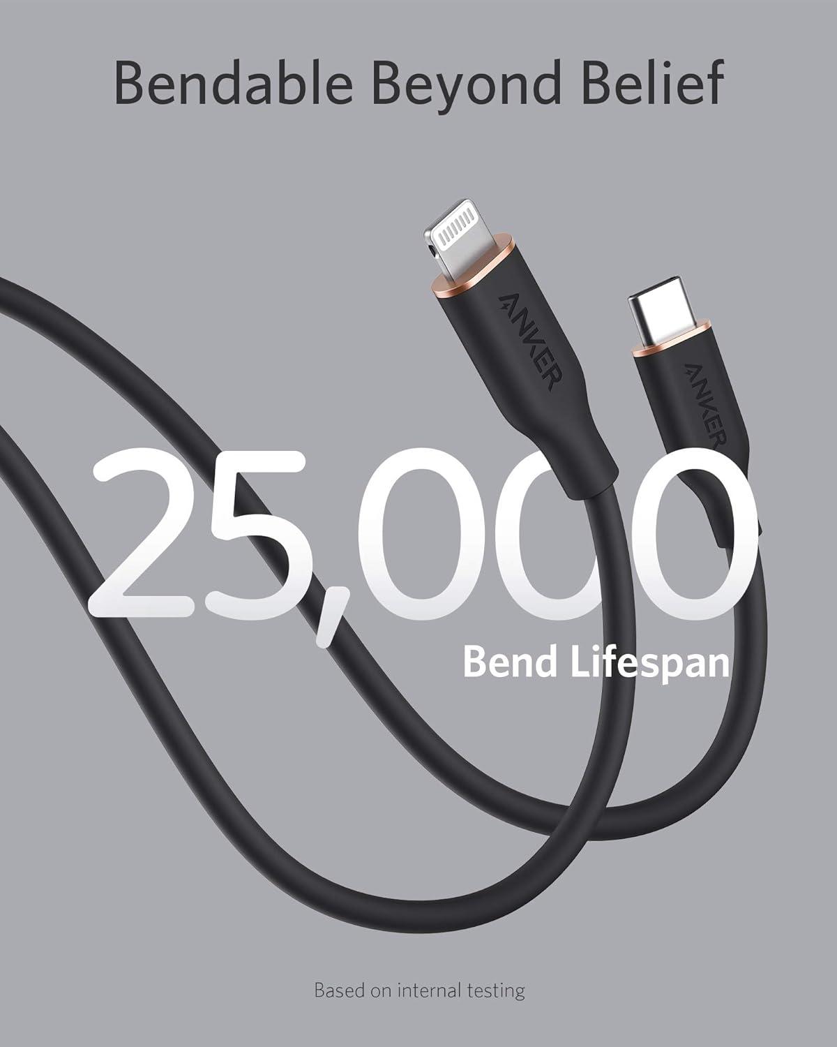 imageAnker USB C to Lightning Cable MFi Certified Powerline III Flow Silicone Charging Cable for iPhone 13 13 Pro Midnight Black 6ftBlack